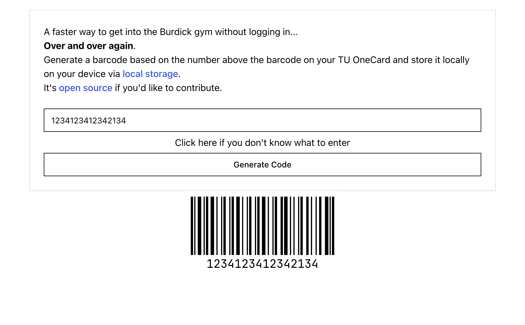 Once I learned that a barcode is just another way of representing data in machine-readable form, I started using online barcode generators to check into the gym by inputting the values above the barcode in my university ID.